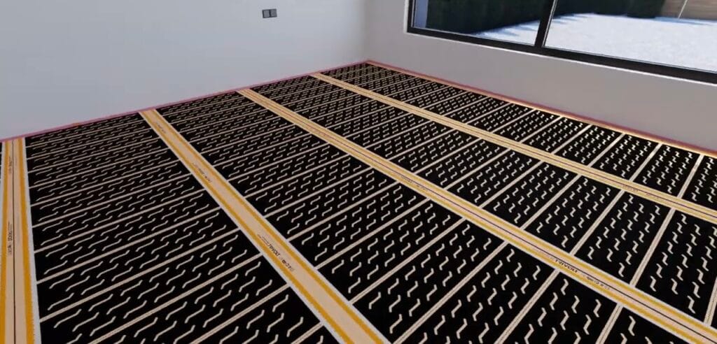 Elektrische Fußbodenheizung, die Wärme mithilfe von Widerstandsdrähten oder Heizmatten erzeugt.